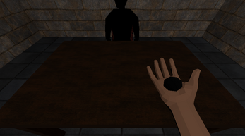 You are in a small room with an eerie assassin, that asks you to take balls out of a box.